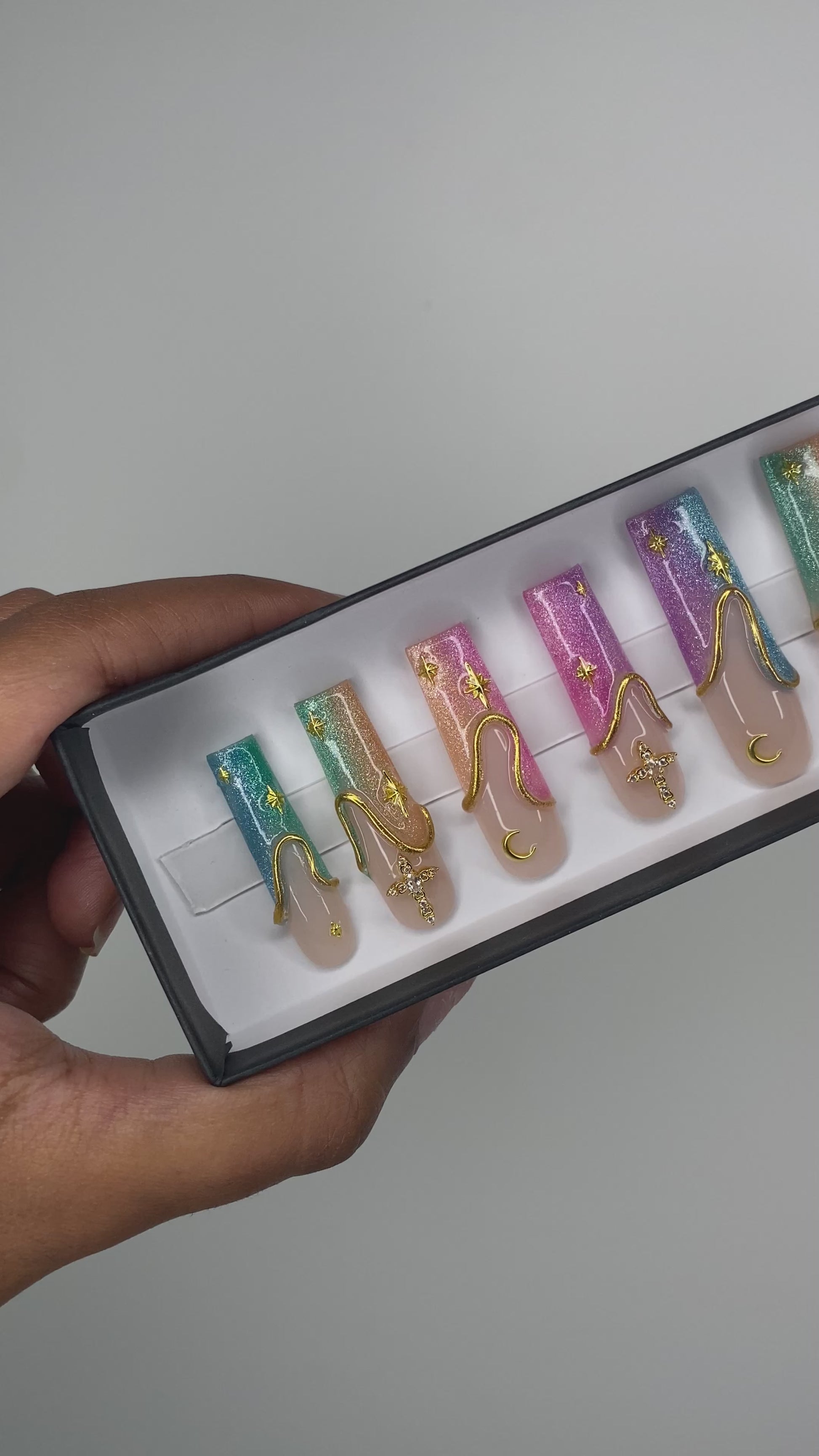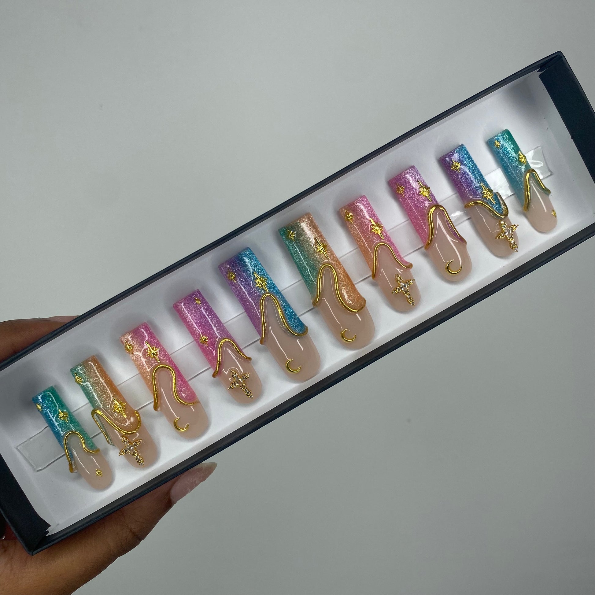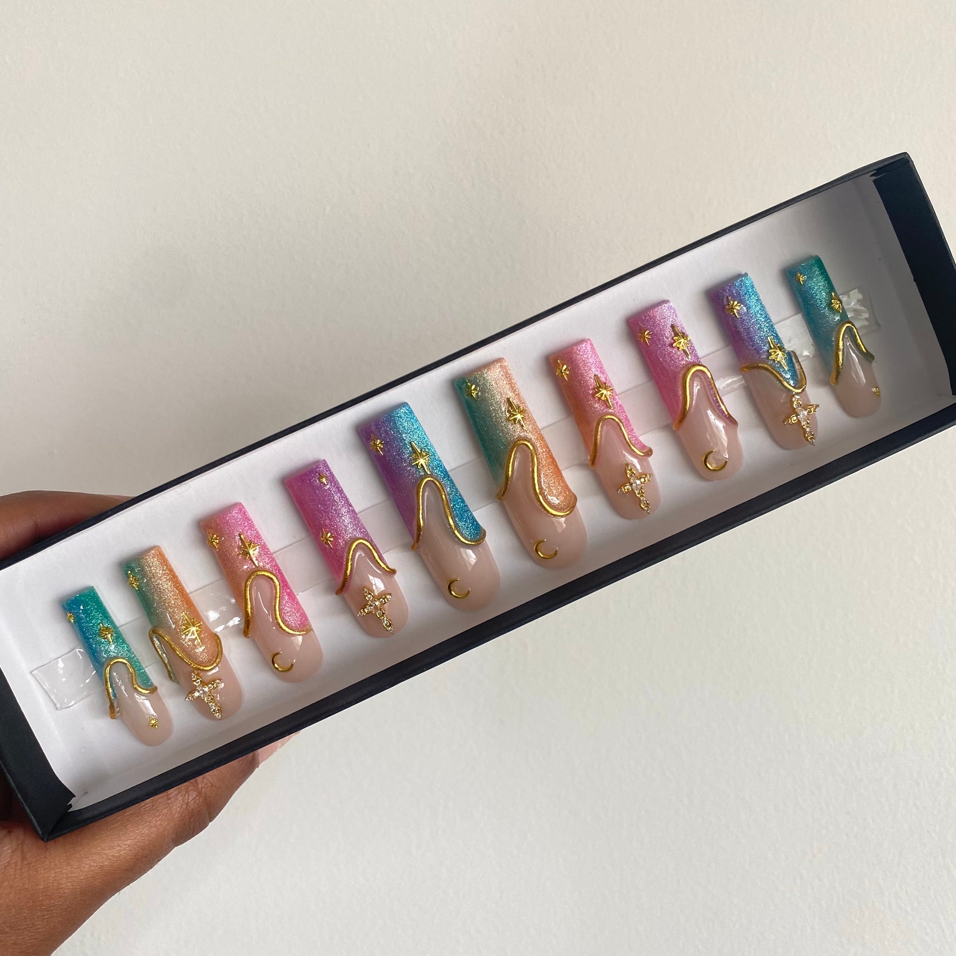 Made to order, handmade soft gel press ons. XL Square is pictured.