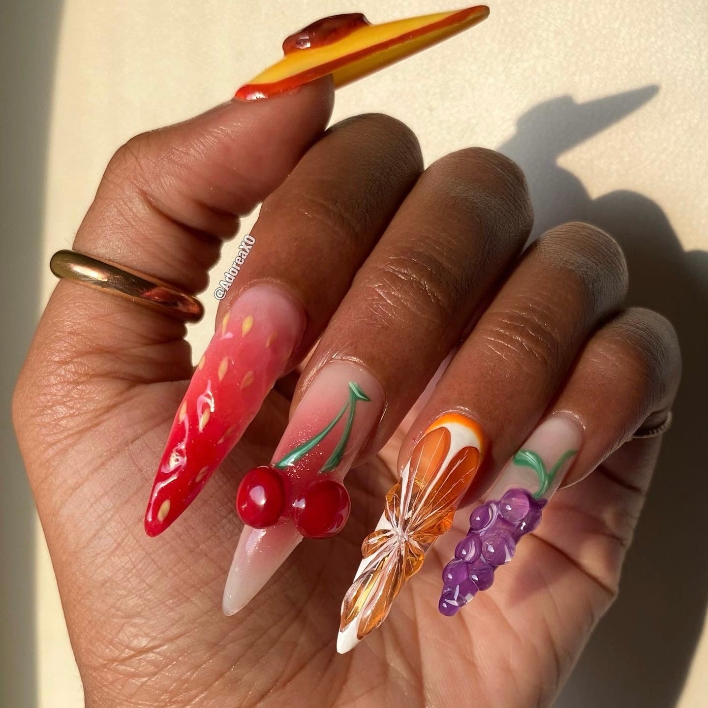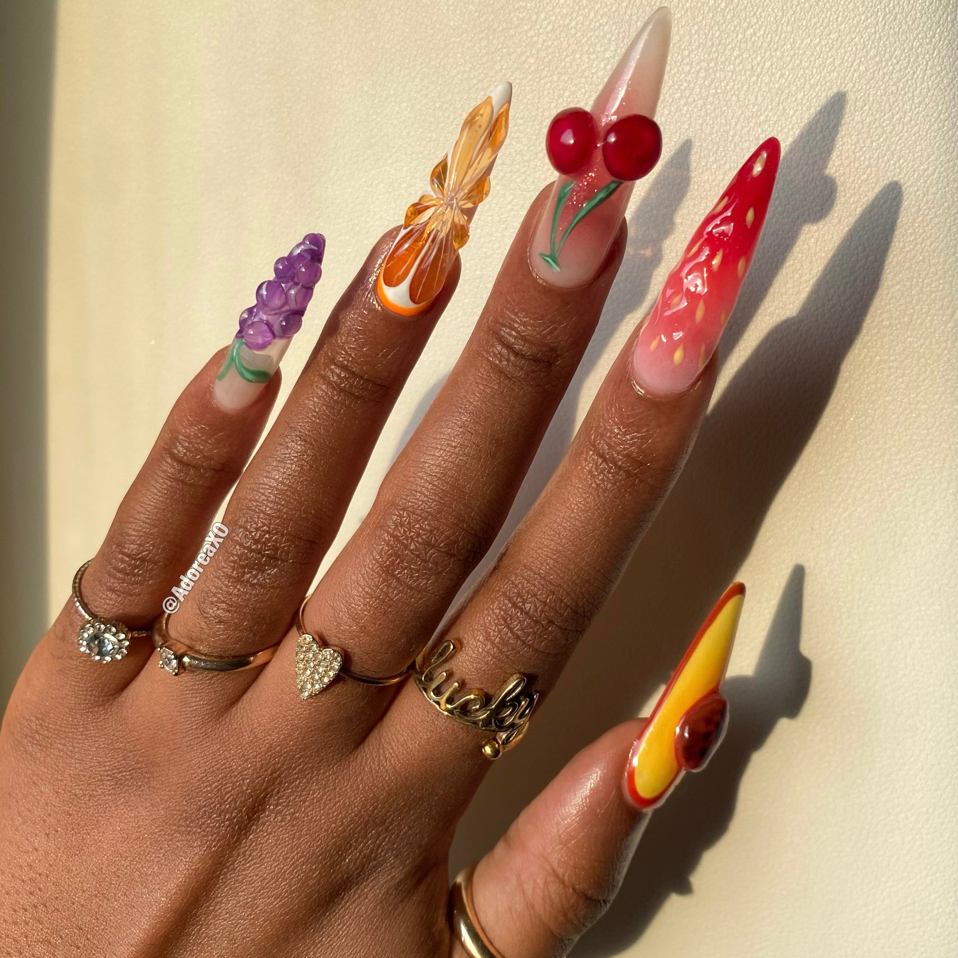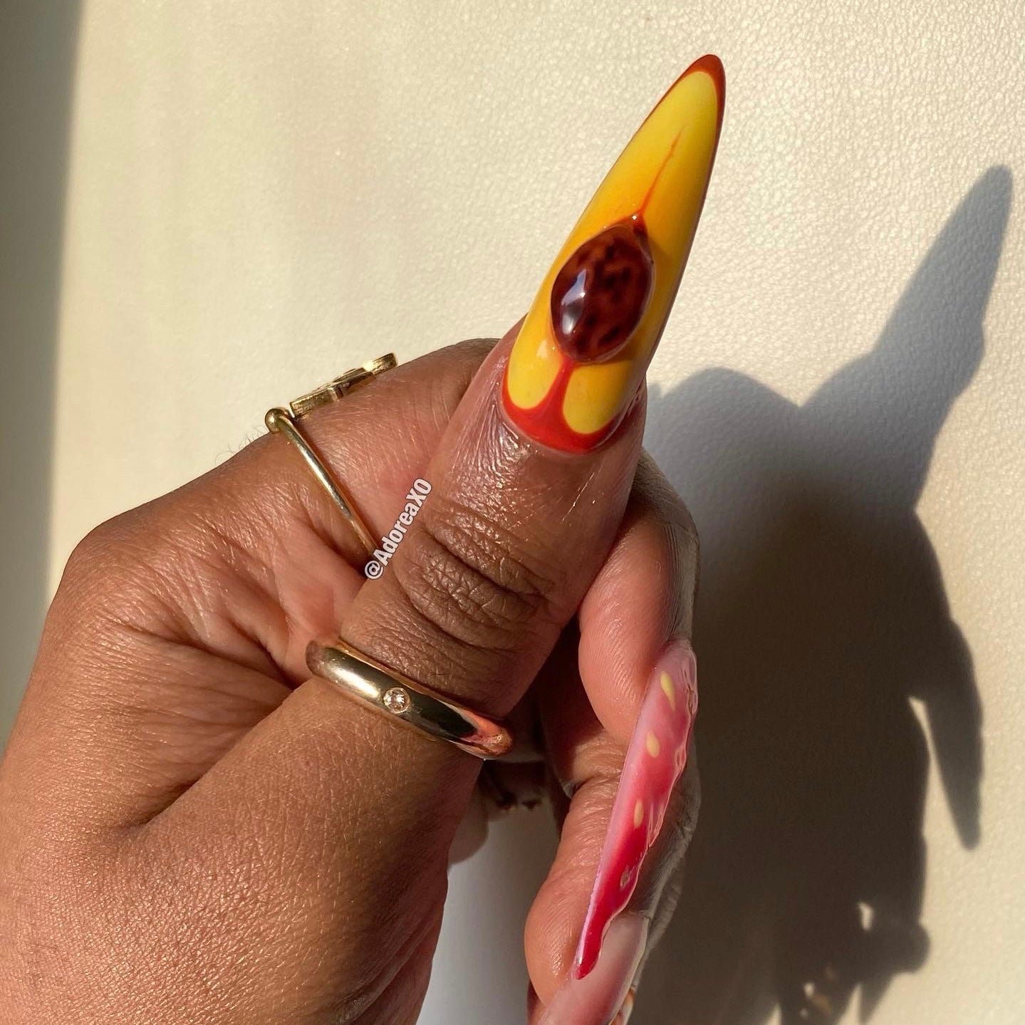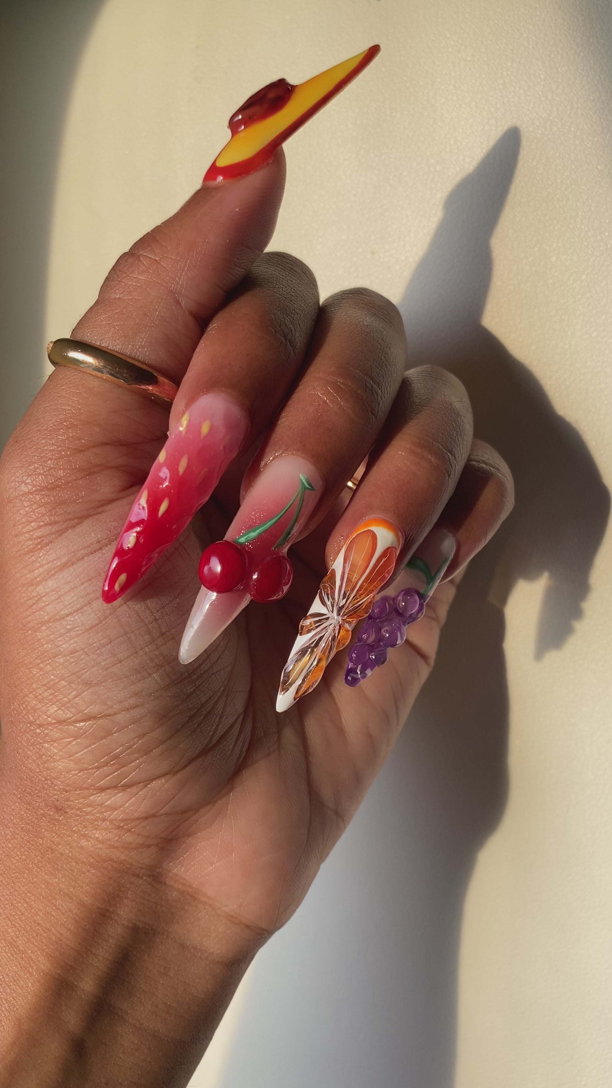 Made to order, handmade soft gel press ons. XL Pointed shape is pictured.