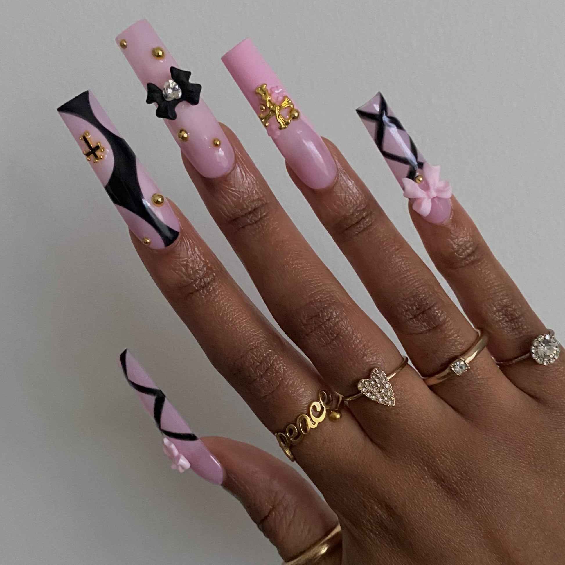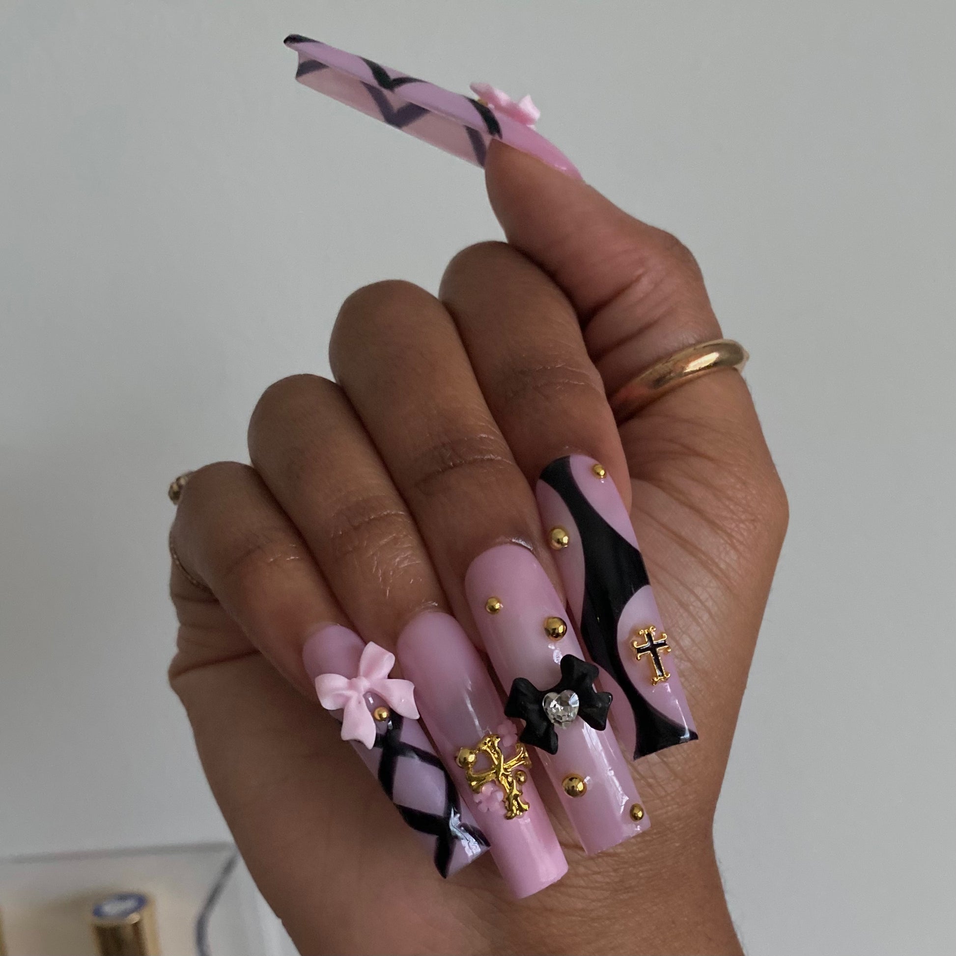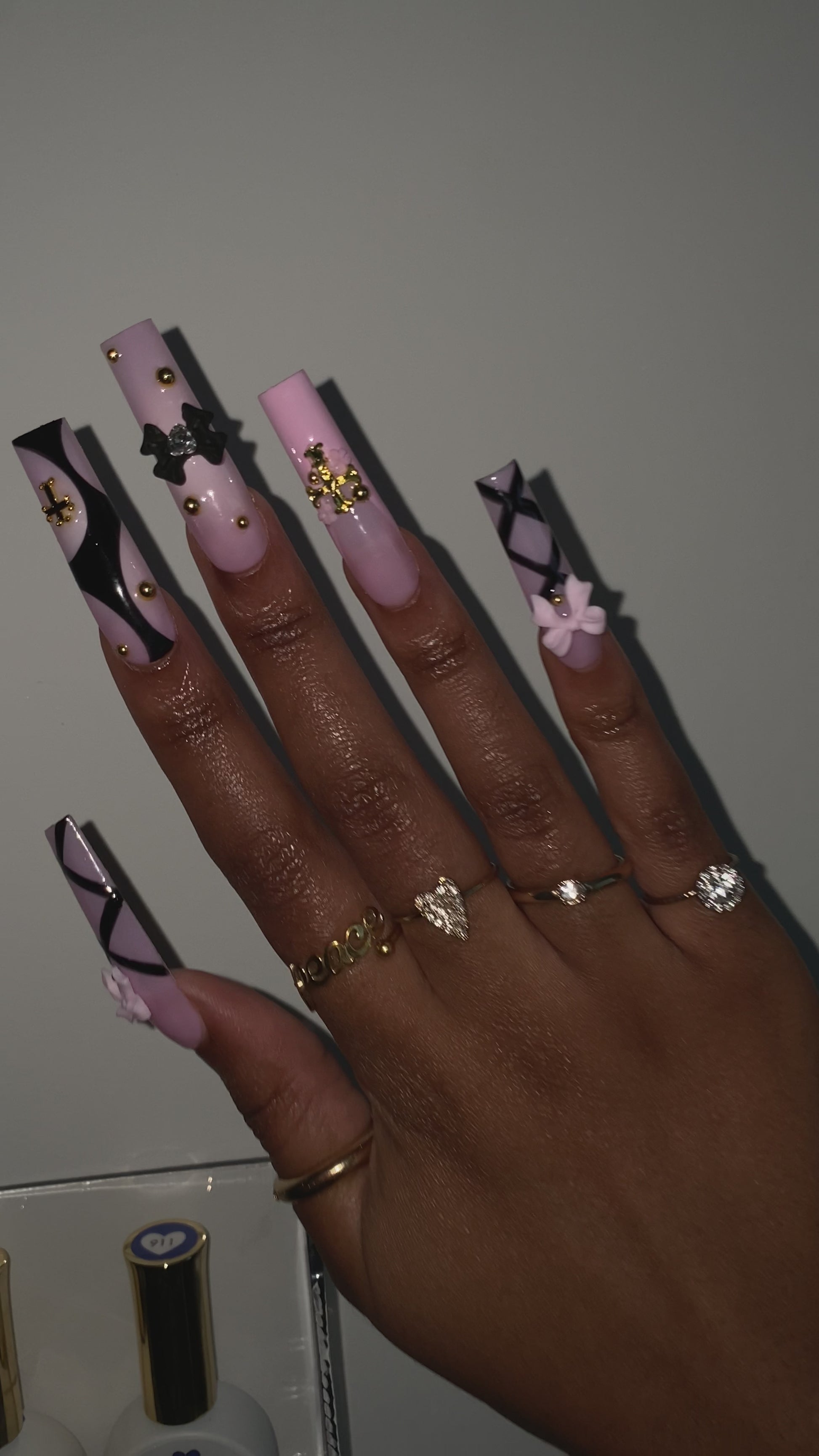 Made to order, handmade soft gel press ons. XL Square shape is pictured.