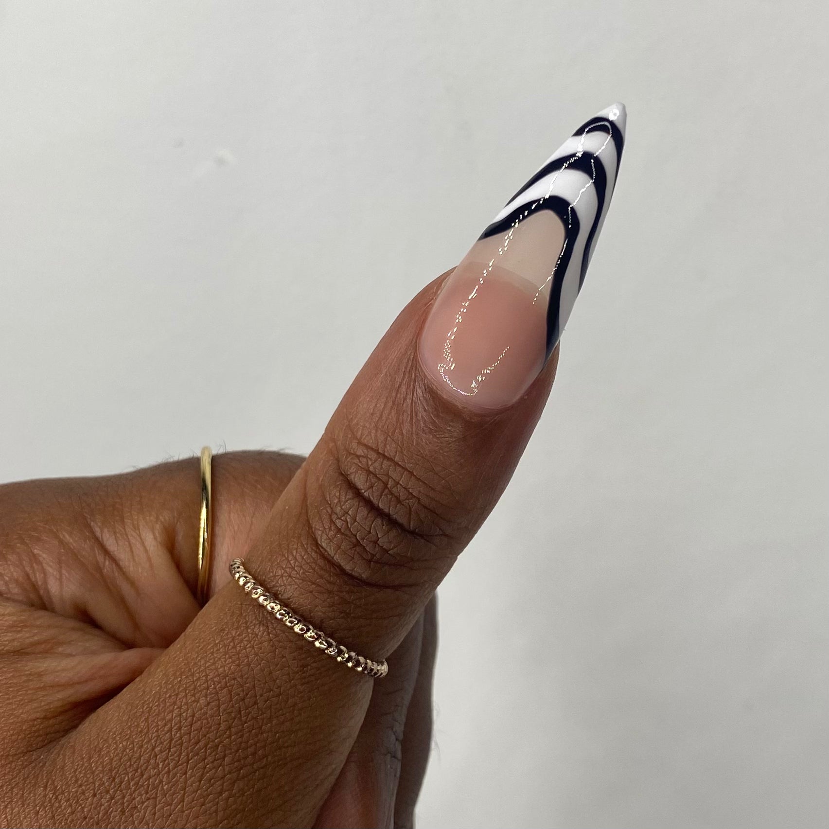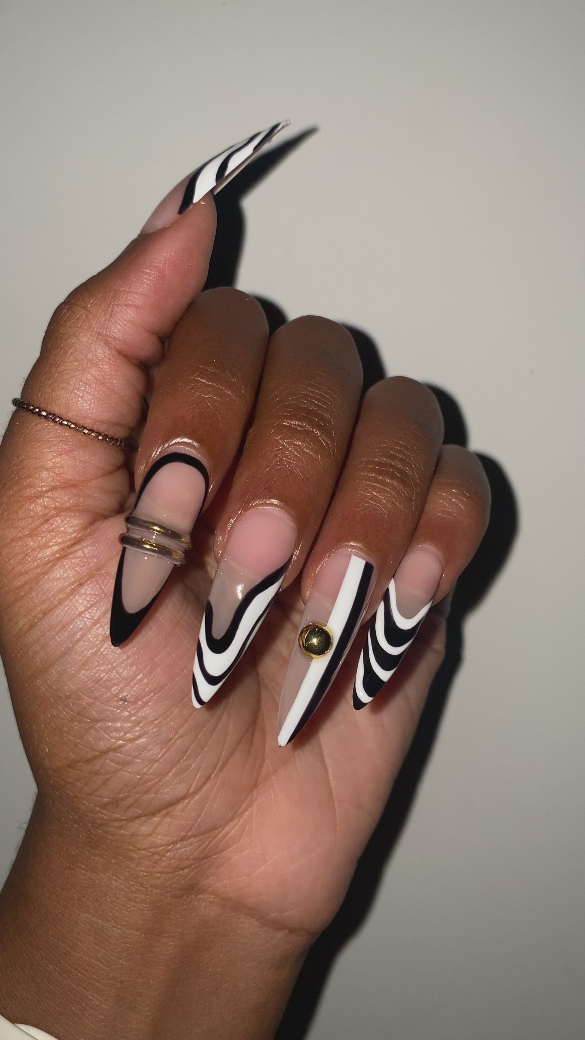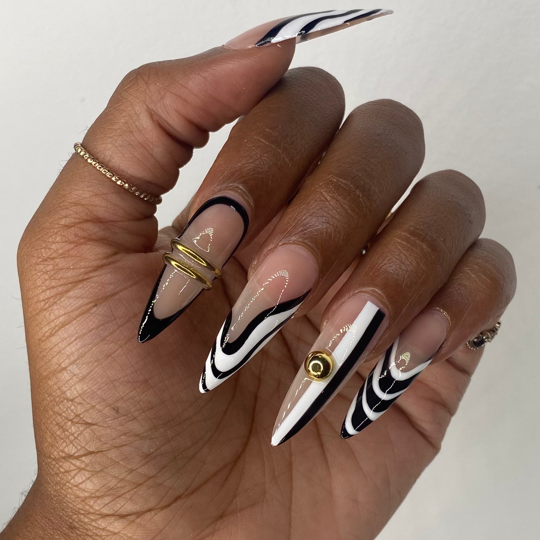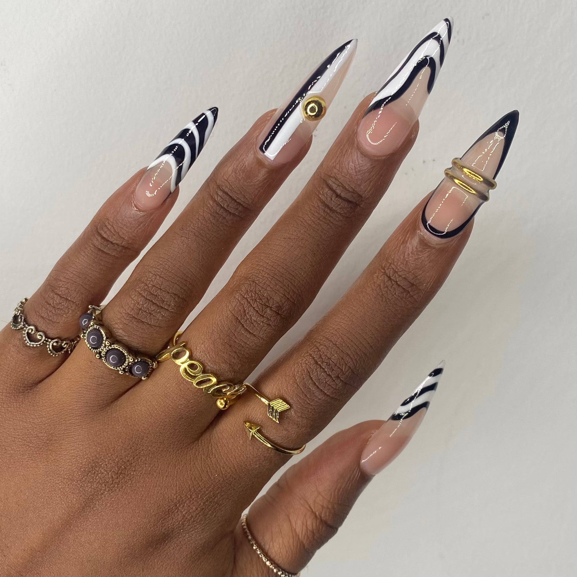 Made to order, handmade soft gel press ons. Long Stiletto is pictured.