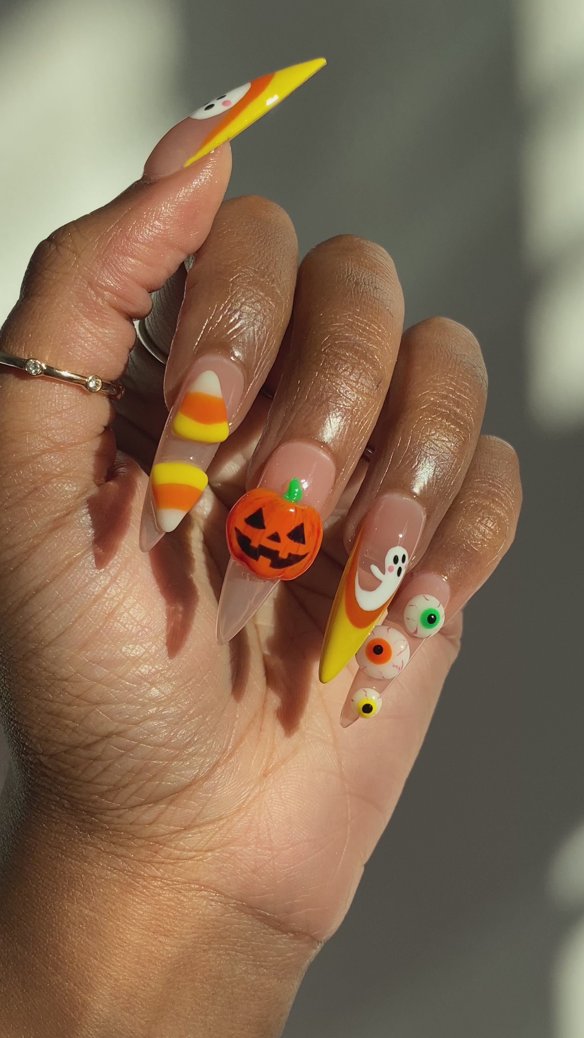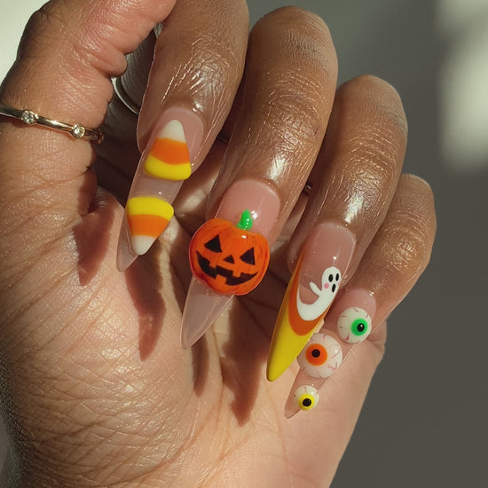Made to order, handmade soft gel press ons. Long Pointed is pictured.
