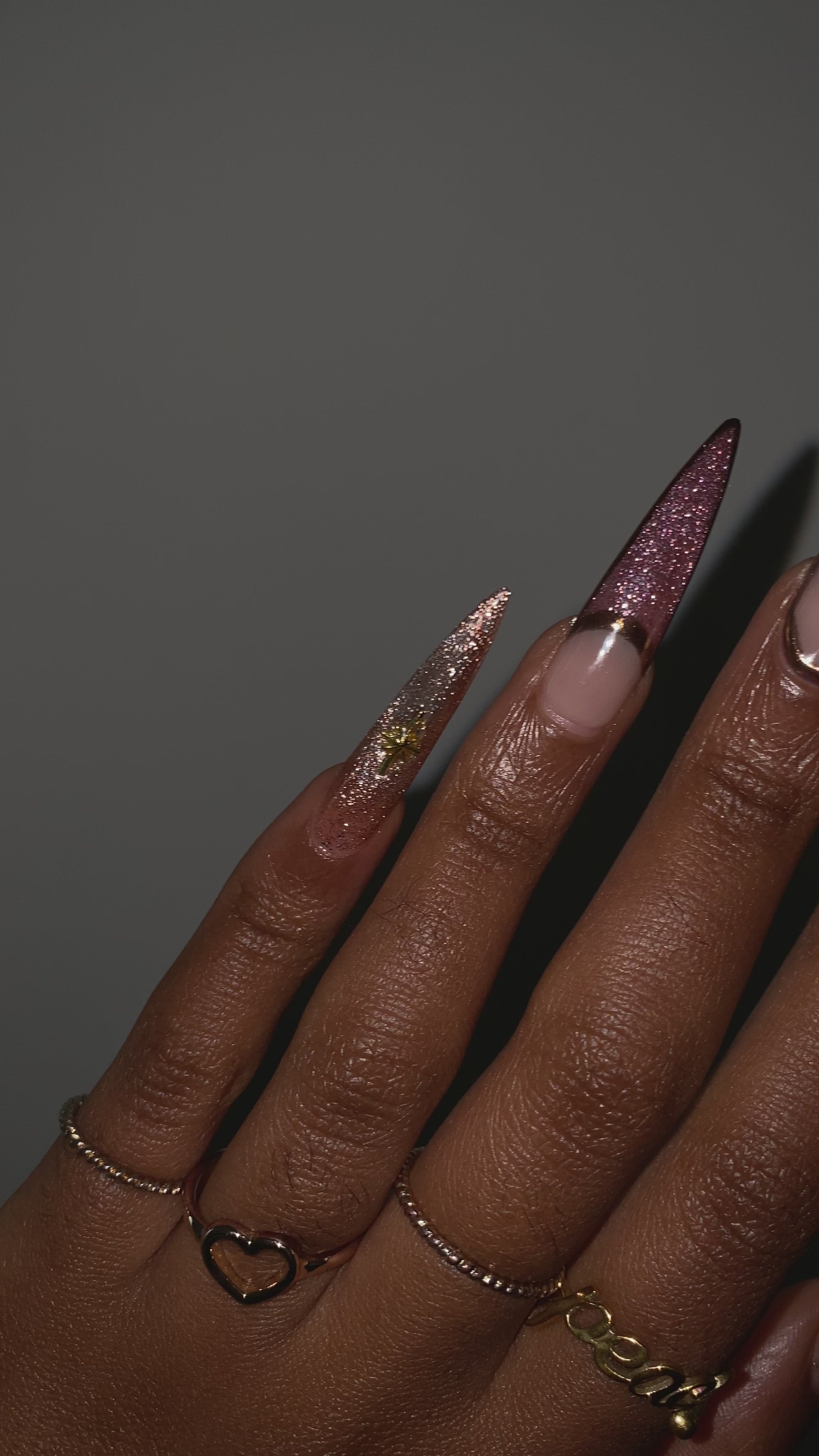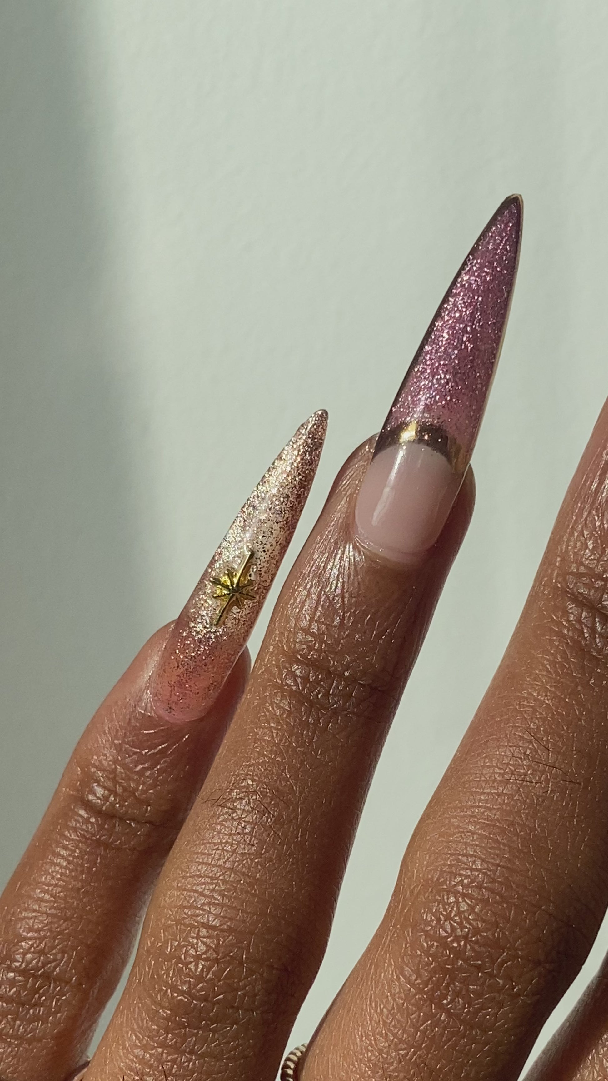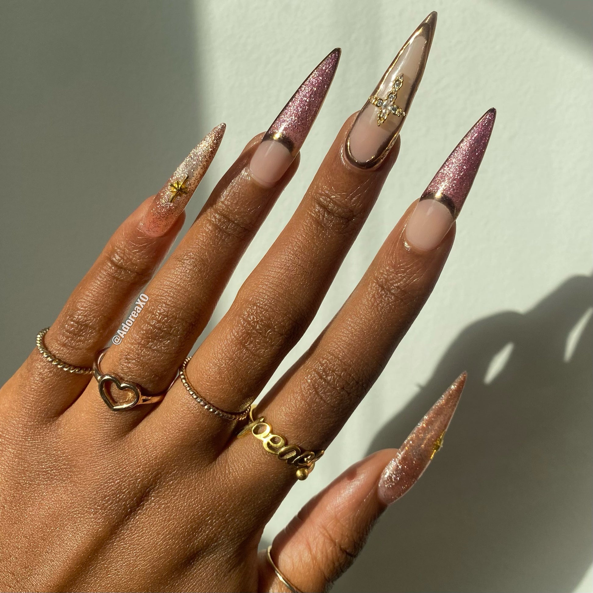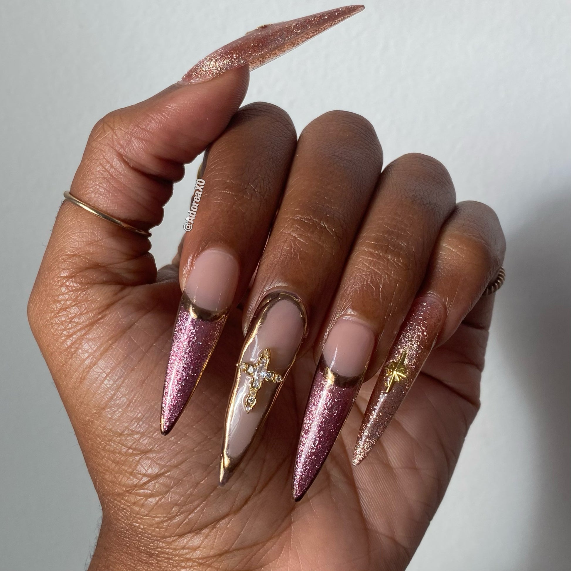 Made to order, handmade soft gel press ons. XL Pointed shape is pictured.