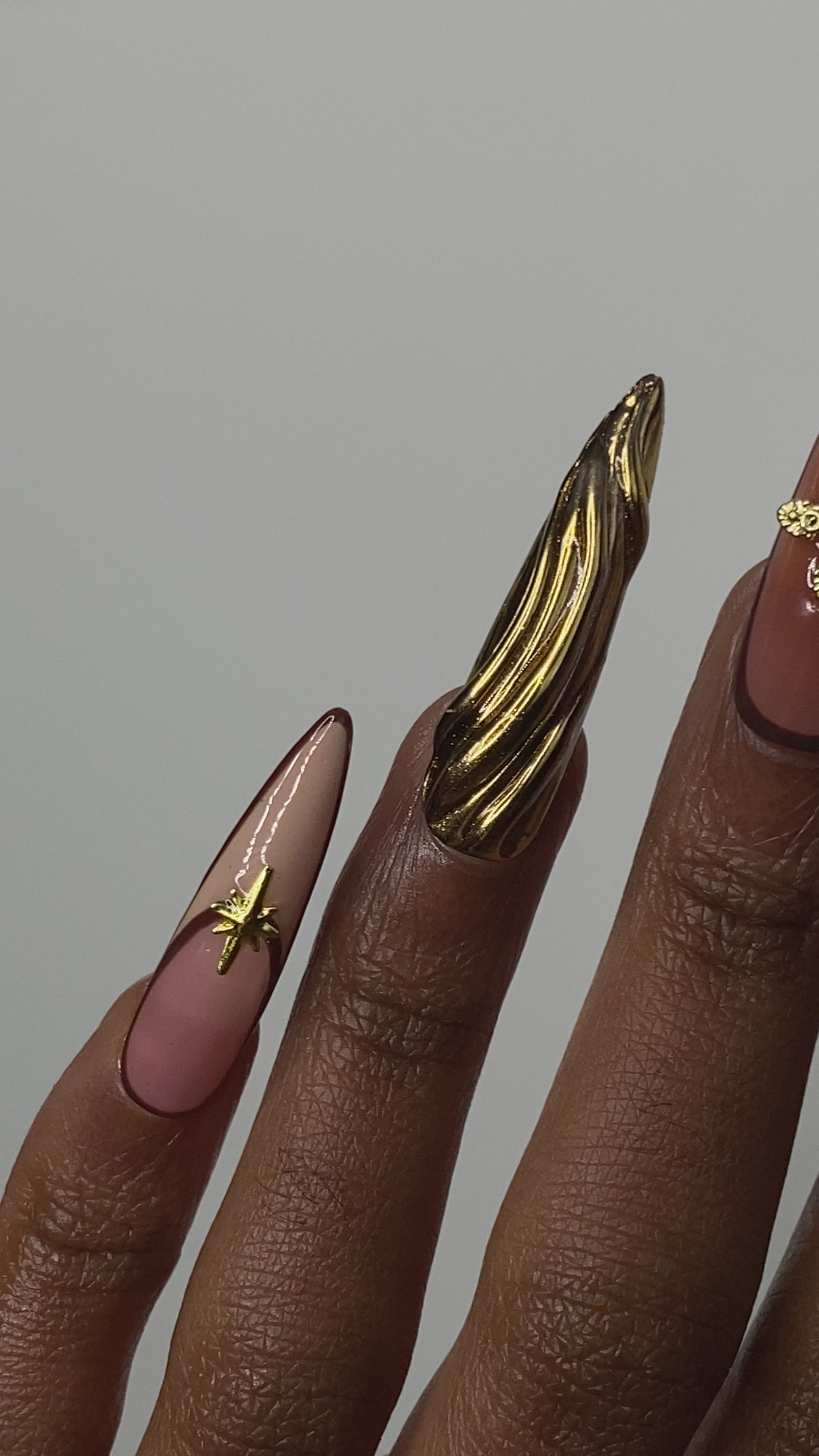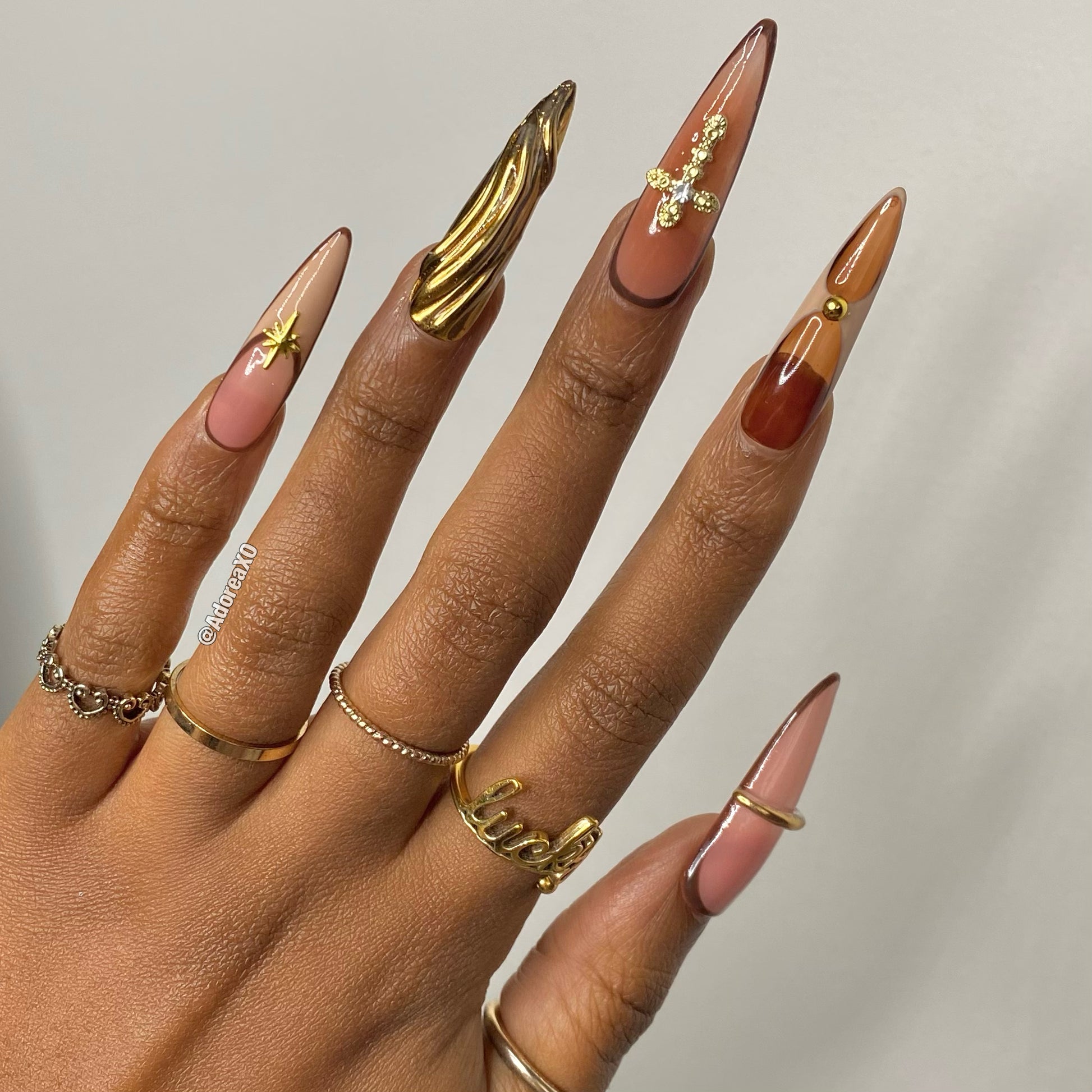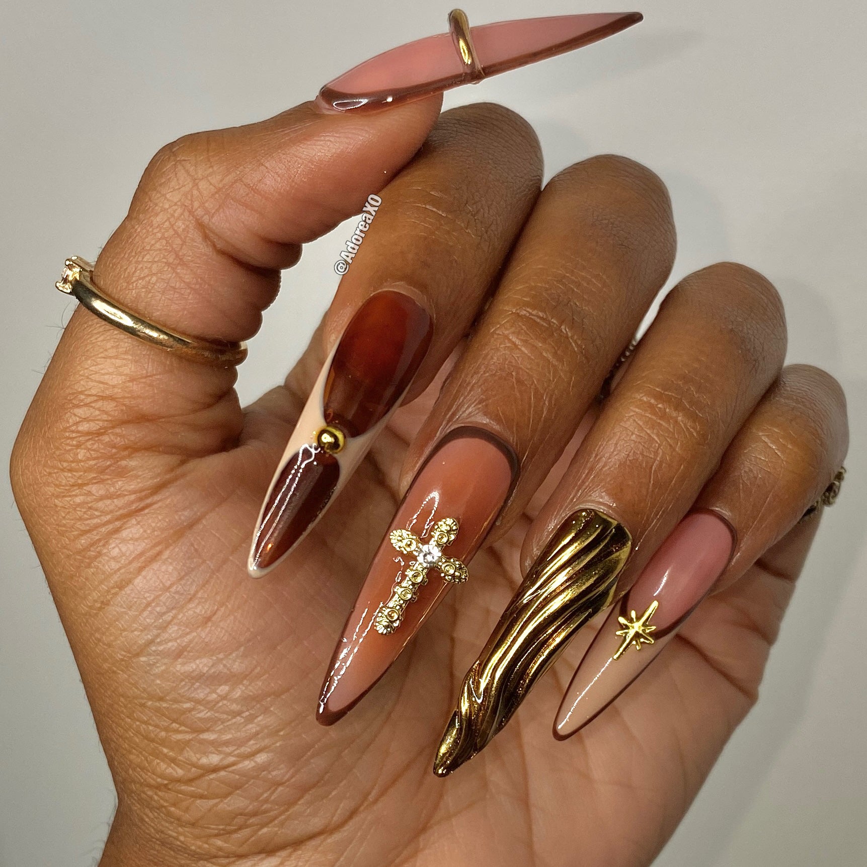 Made to order, handmade soft gel press ons. XL Pointed shape is pictured.