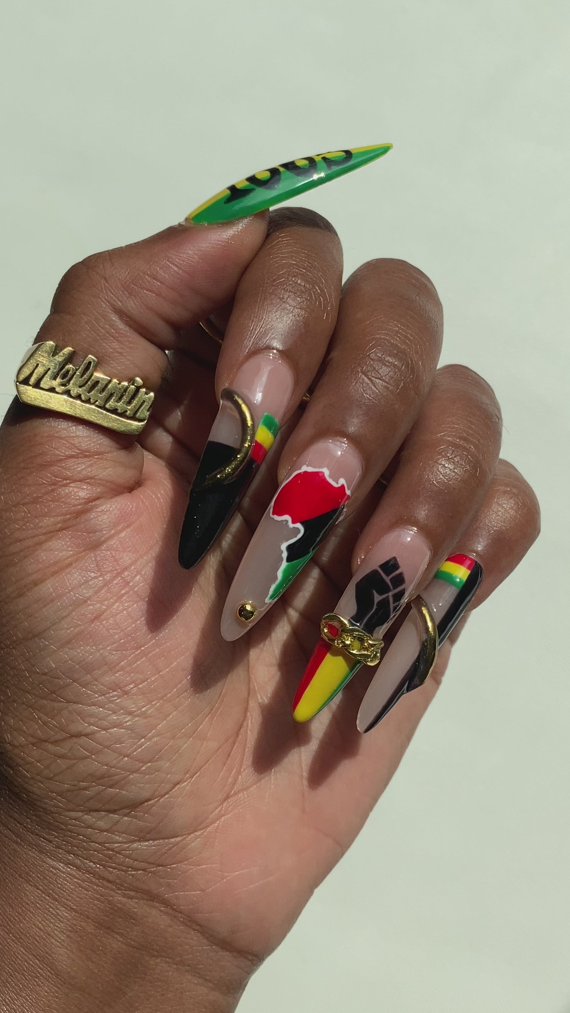 Made to order, handmade soft gel press ons. XL Long Pointed is pictured.