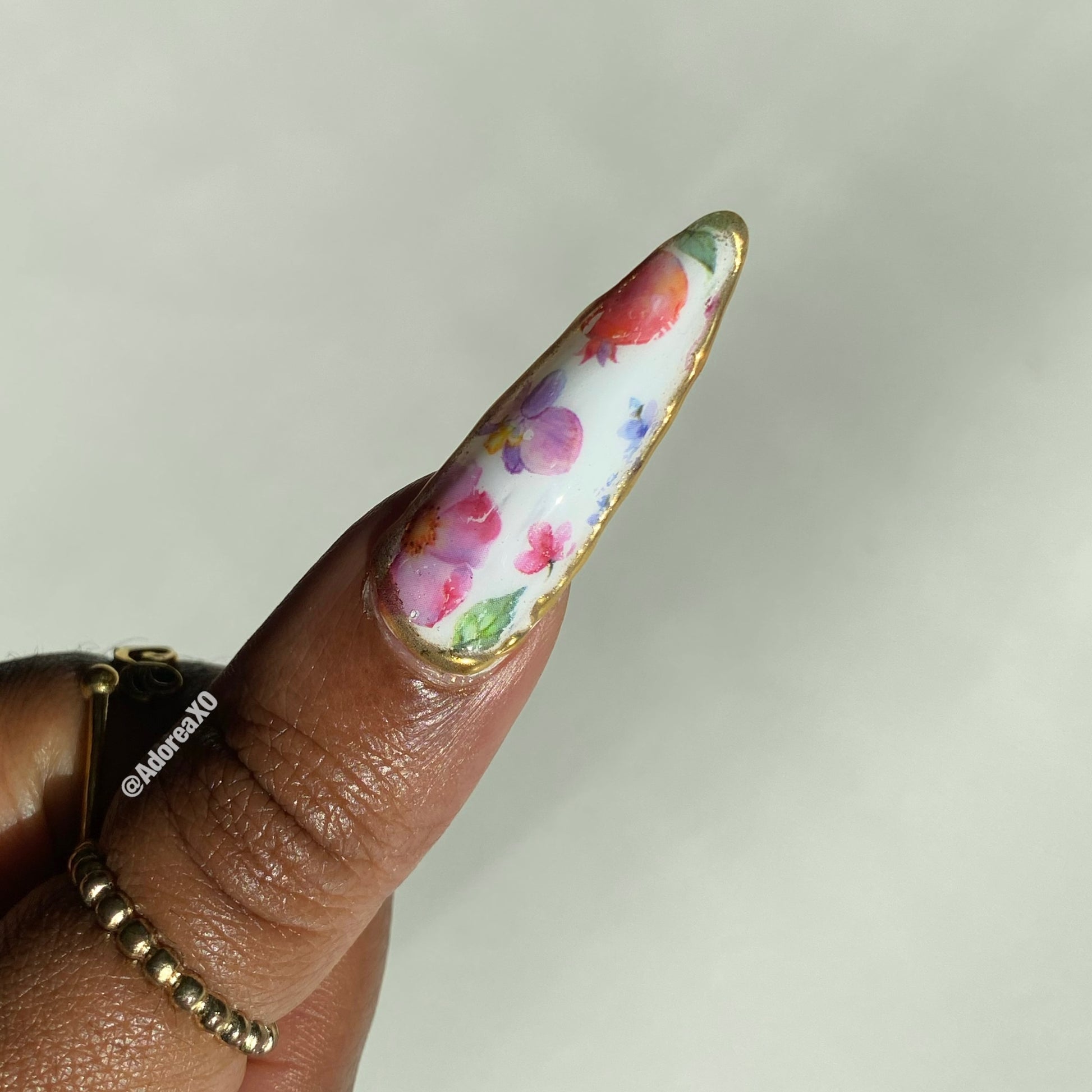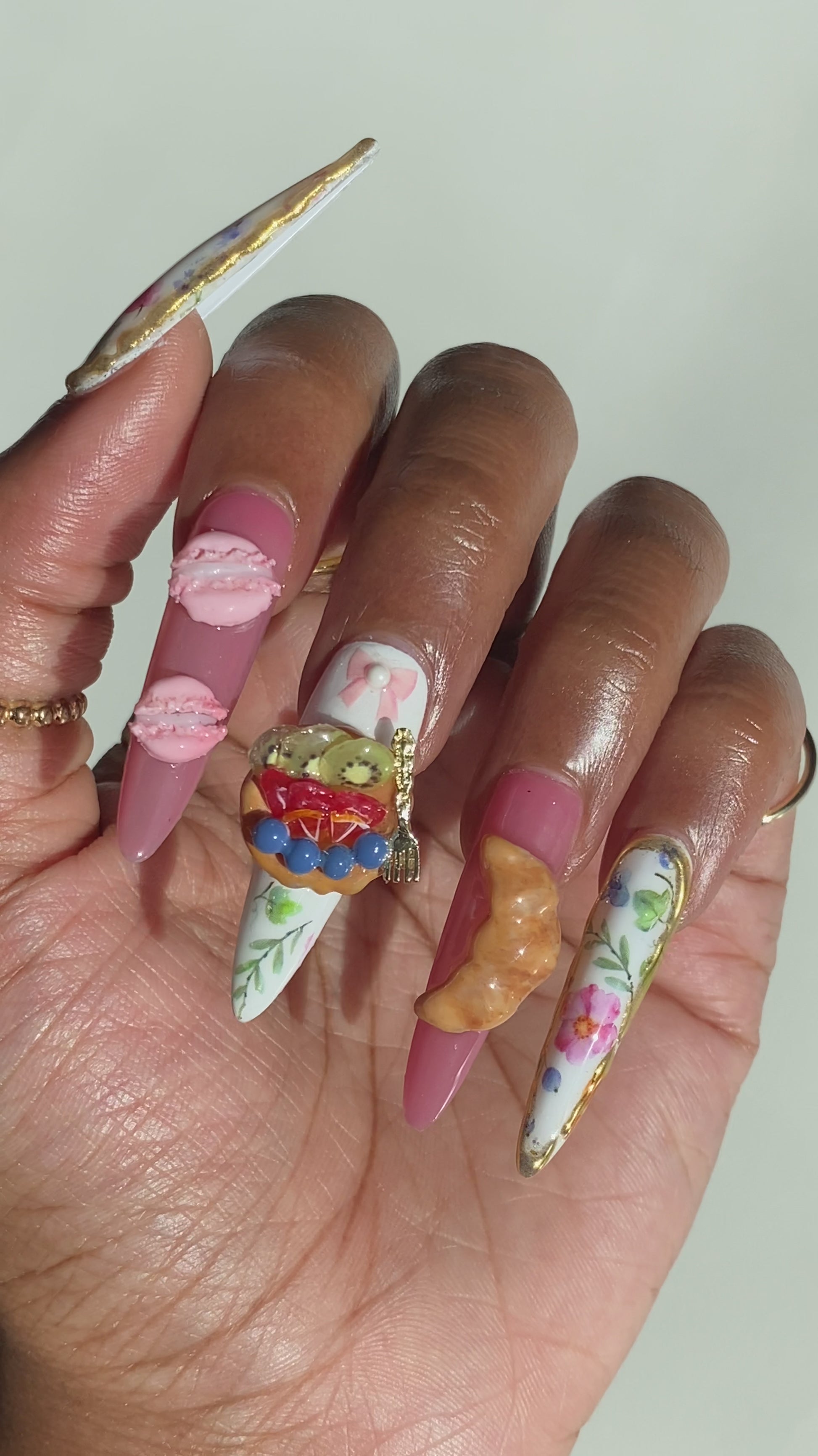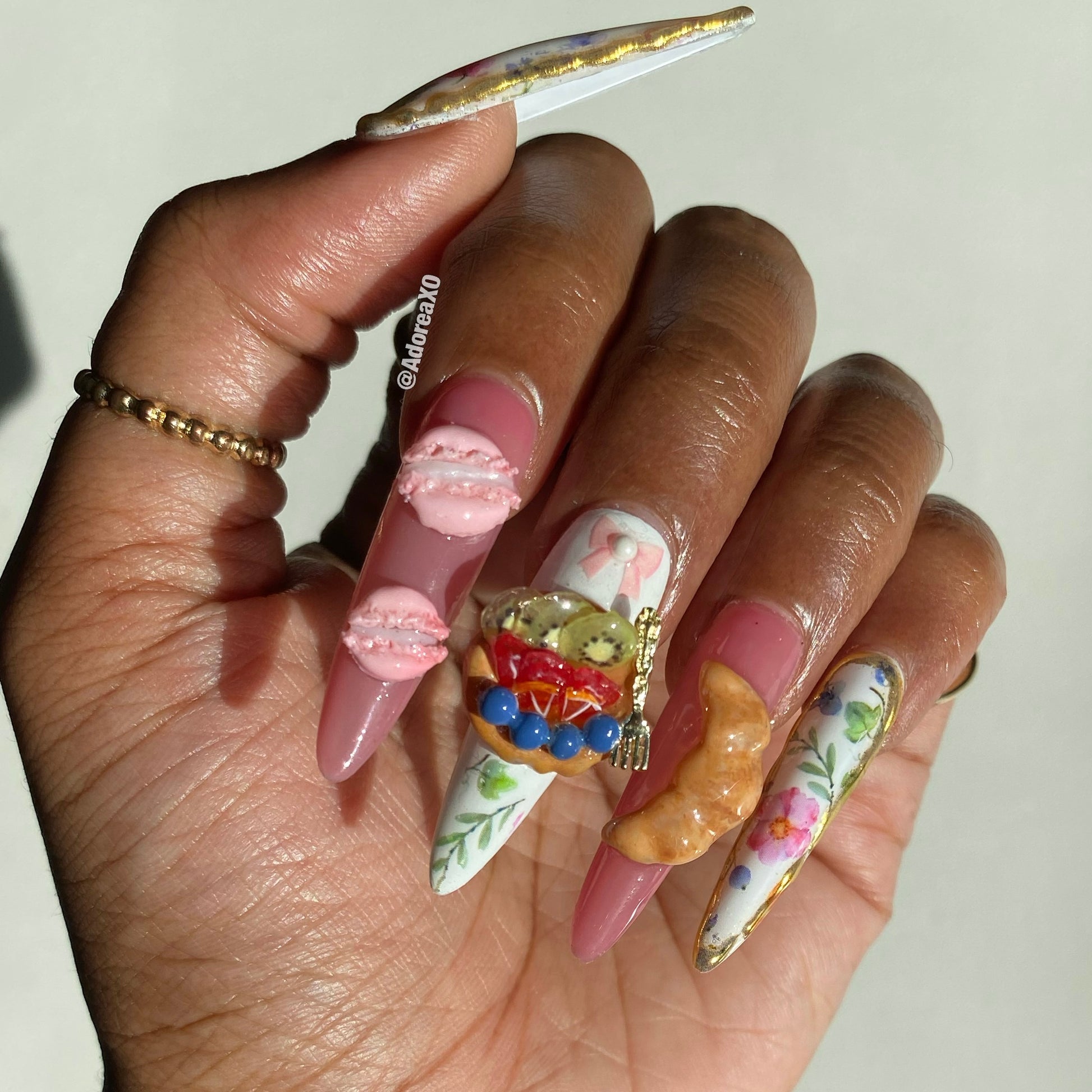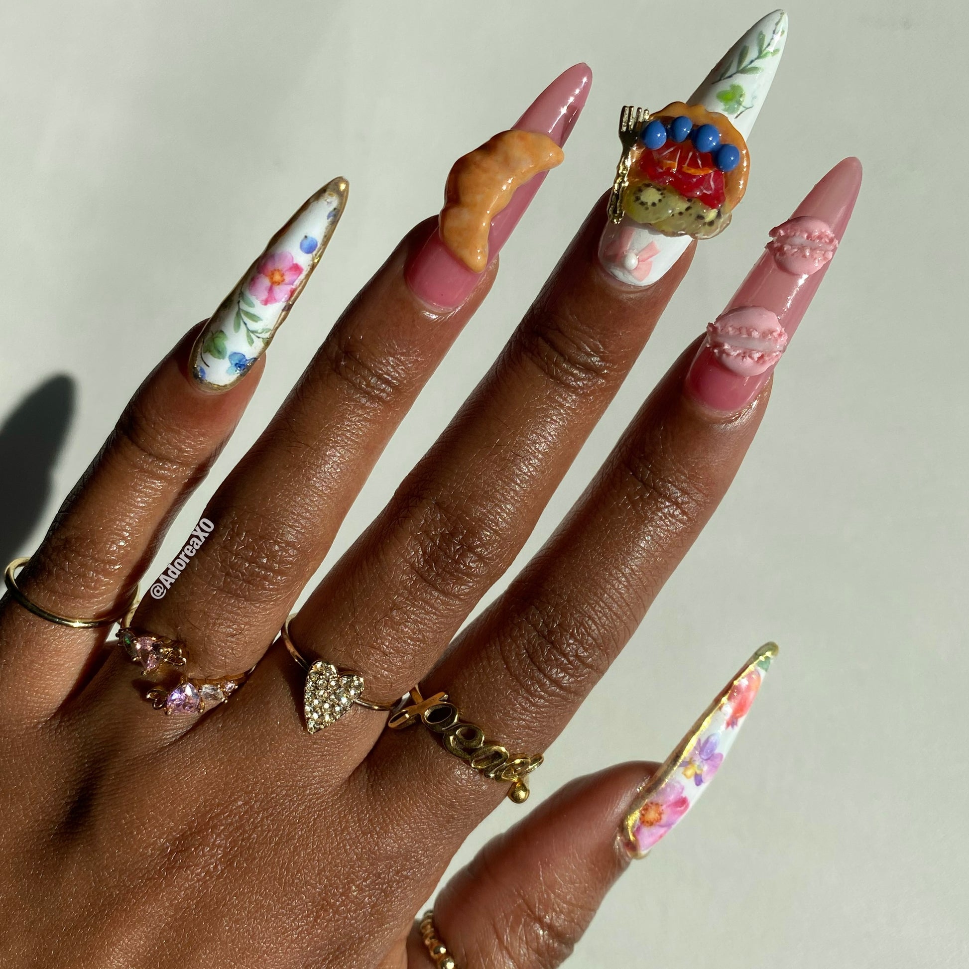 Made to order, handmade soft gel press ons. XL Long Pointed is pictured.