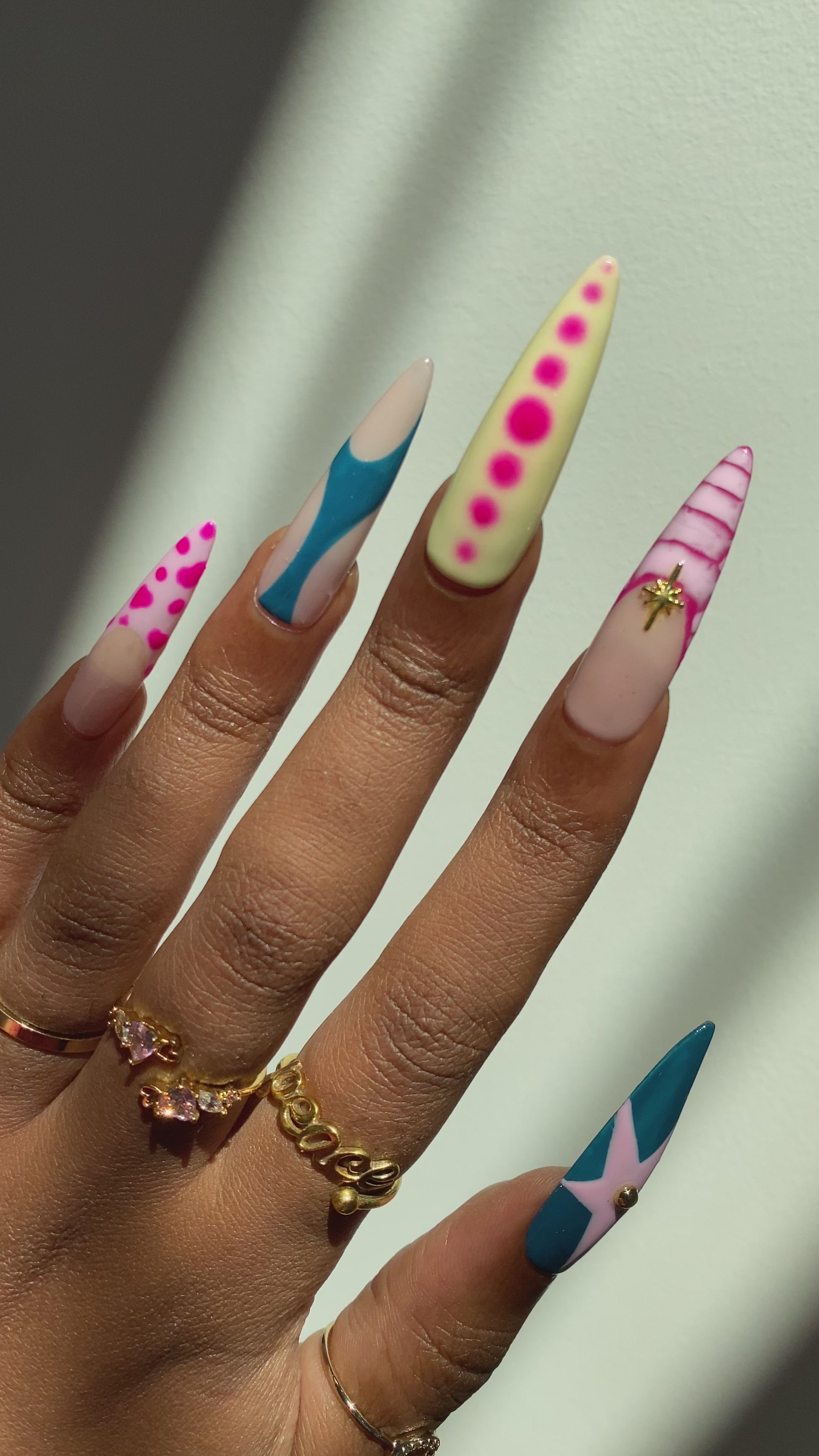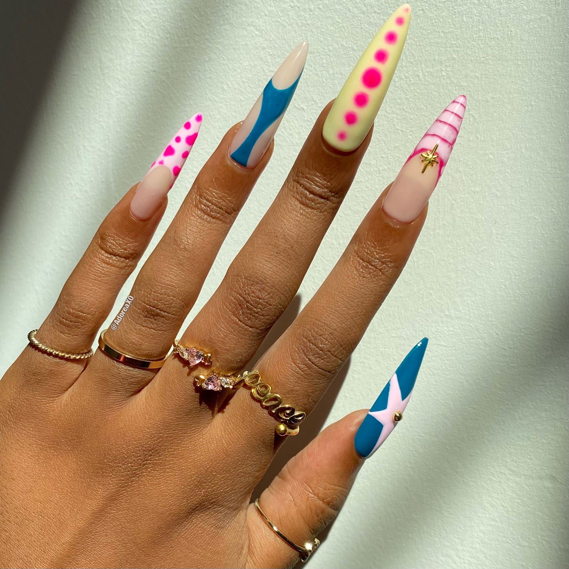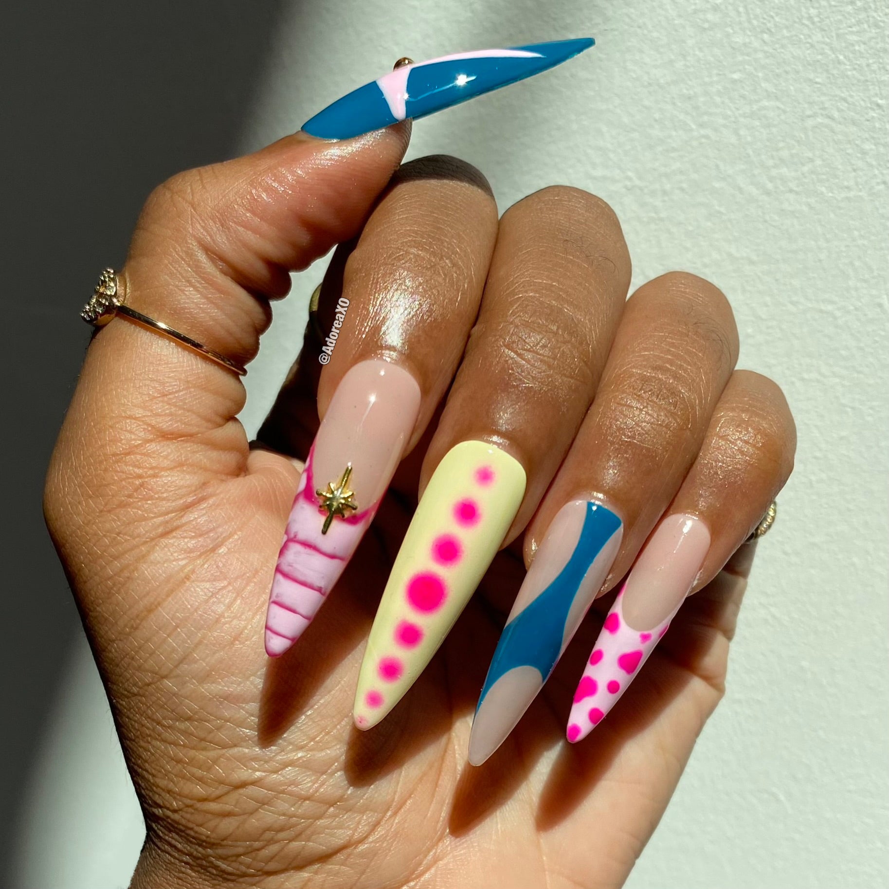 Made to order, handmade soft gel press ons. XL Pointed shape is pictured.