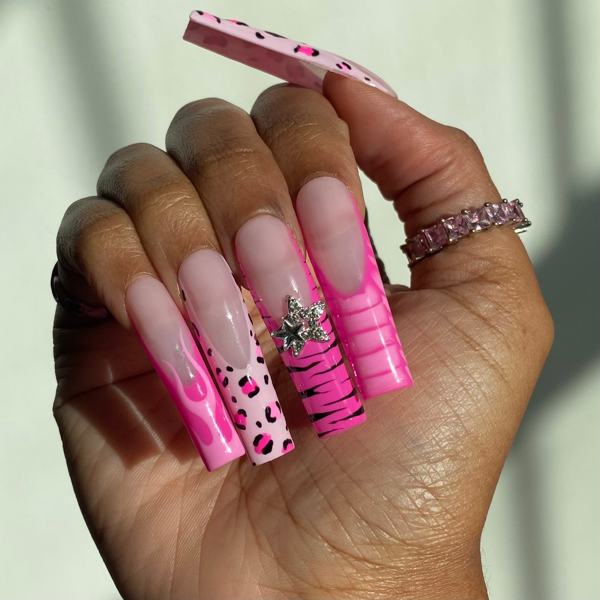Made to order, handmade soft gel press ons. XL Square shape is pictured.
