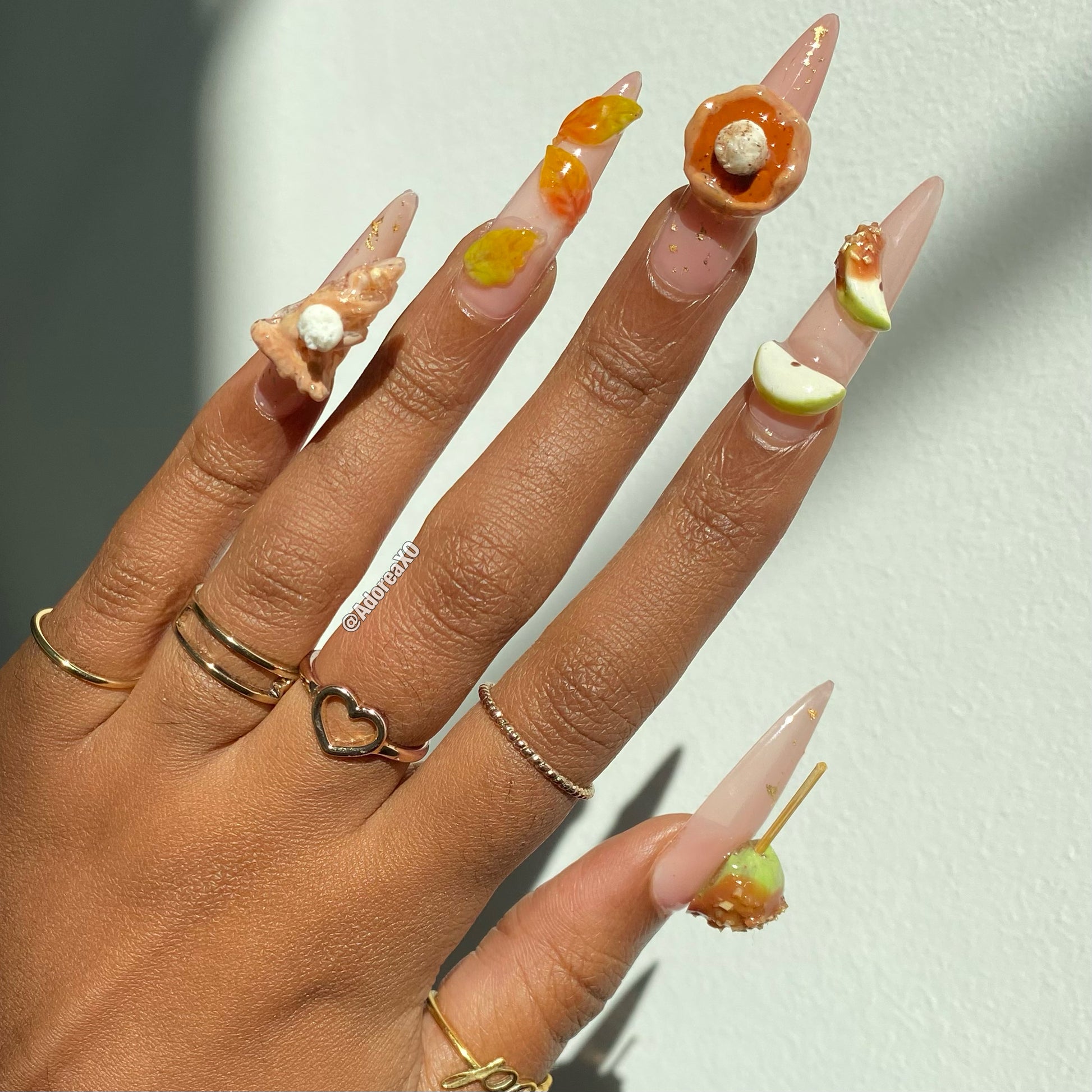 Made to order, handmade soft gel press ons. XL Pointed shape is pictured.