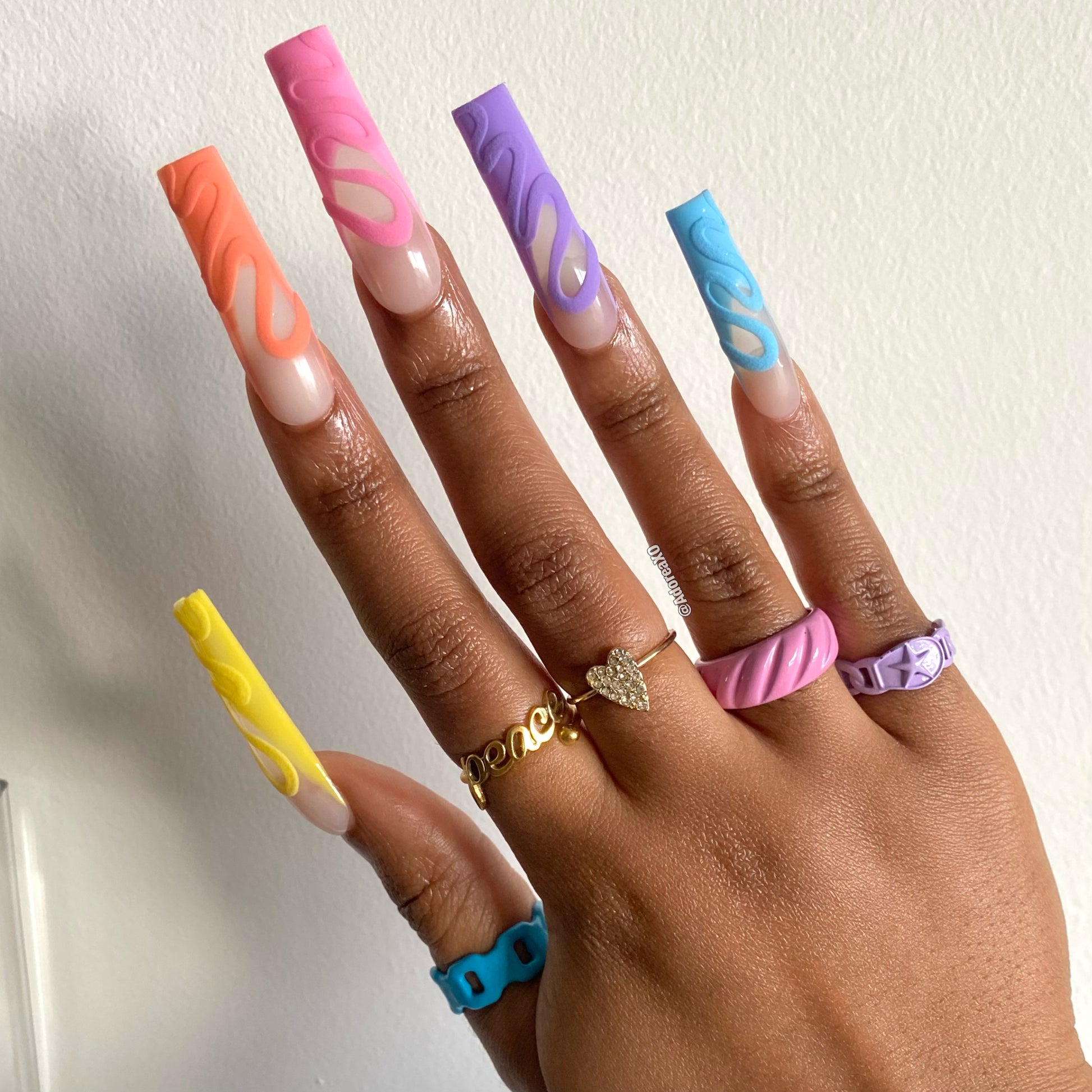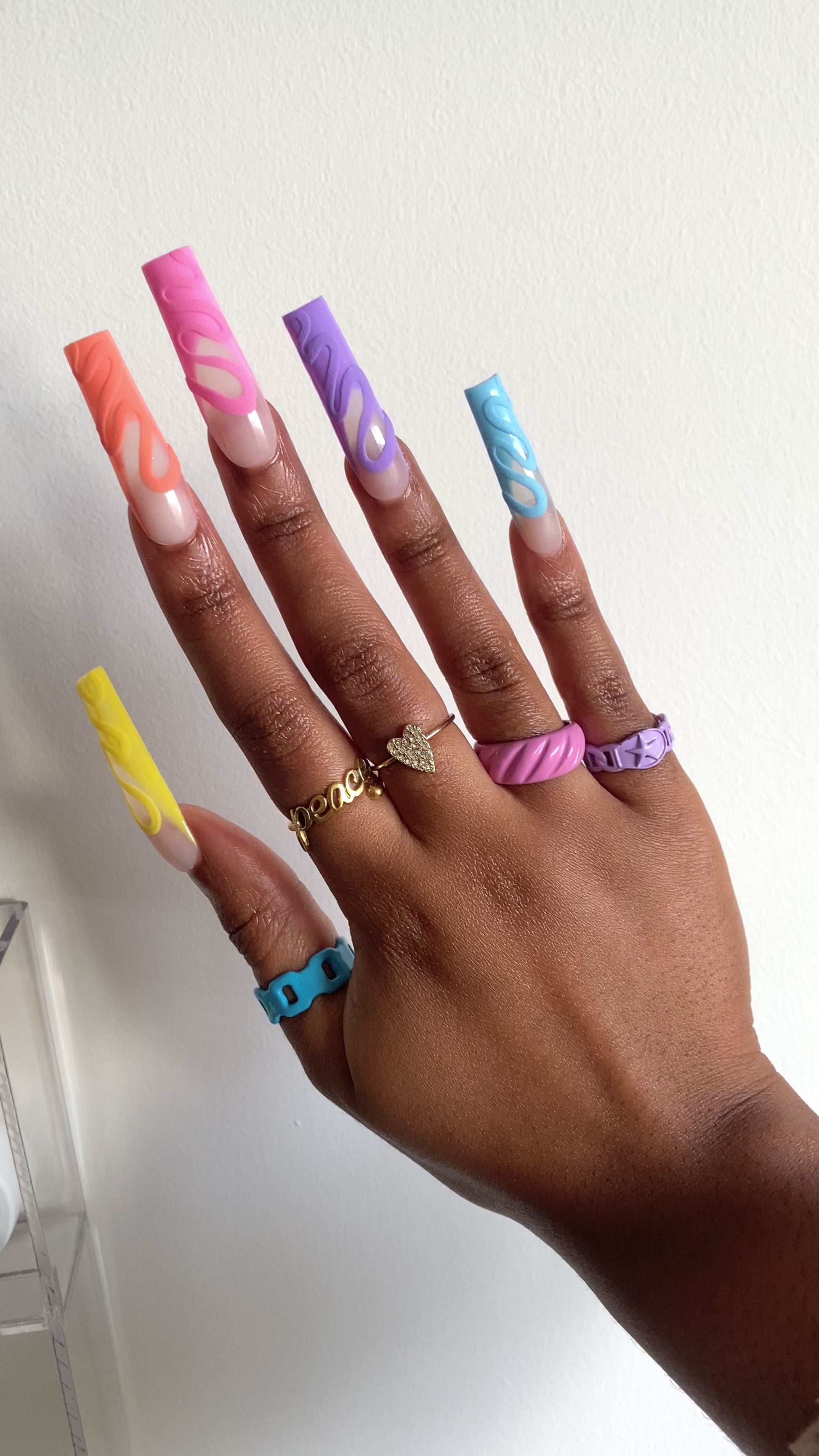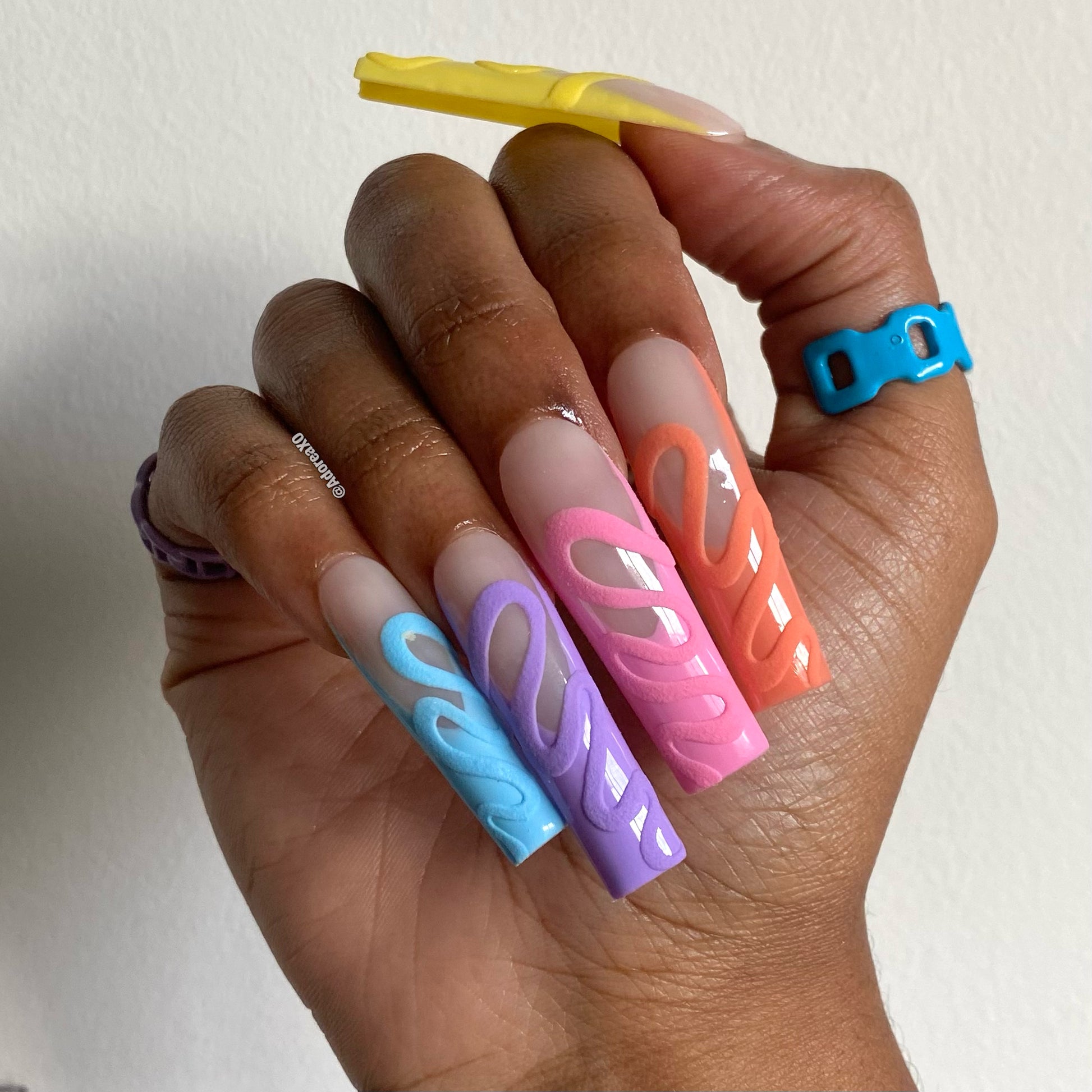 Made to order, handmade soft gel press ons. XL Square shape is pictured.