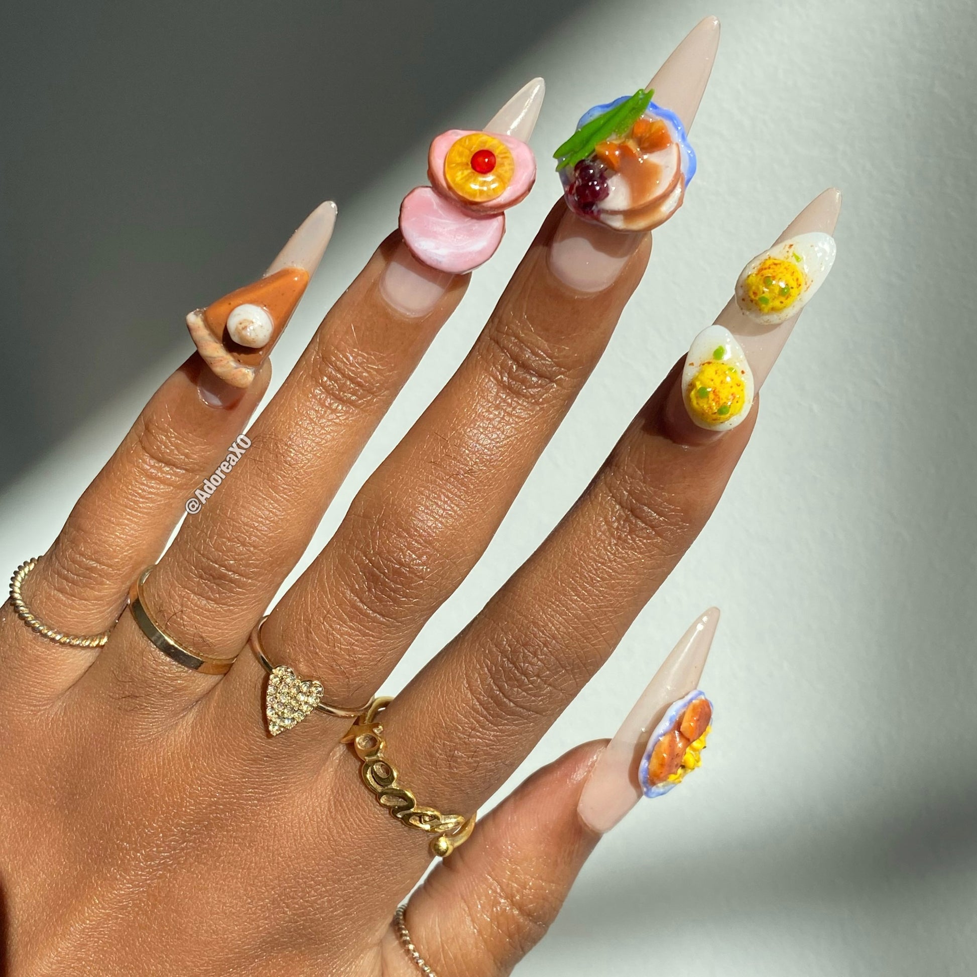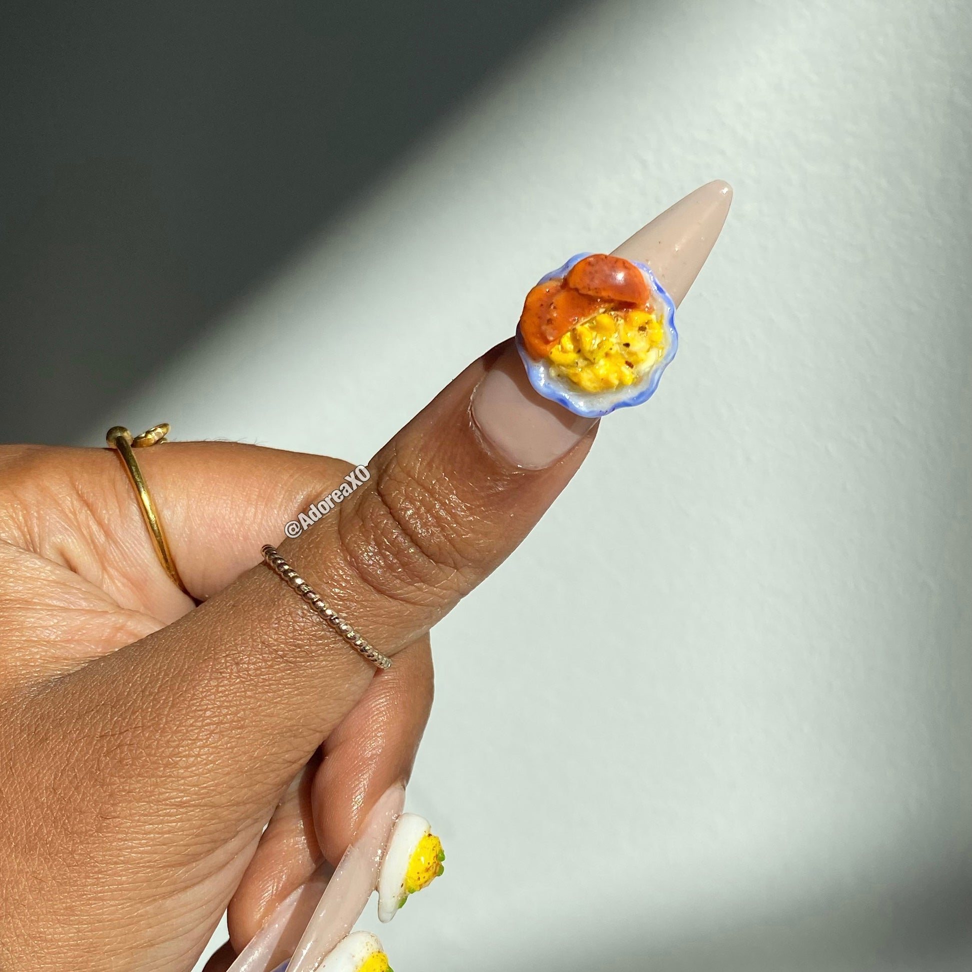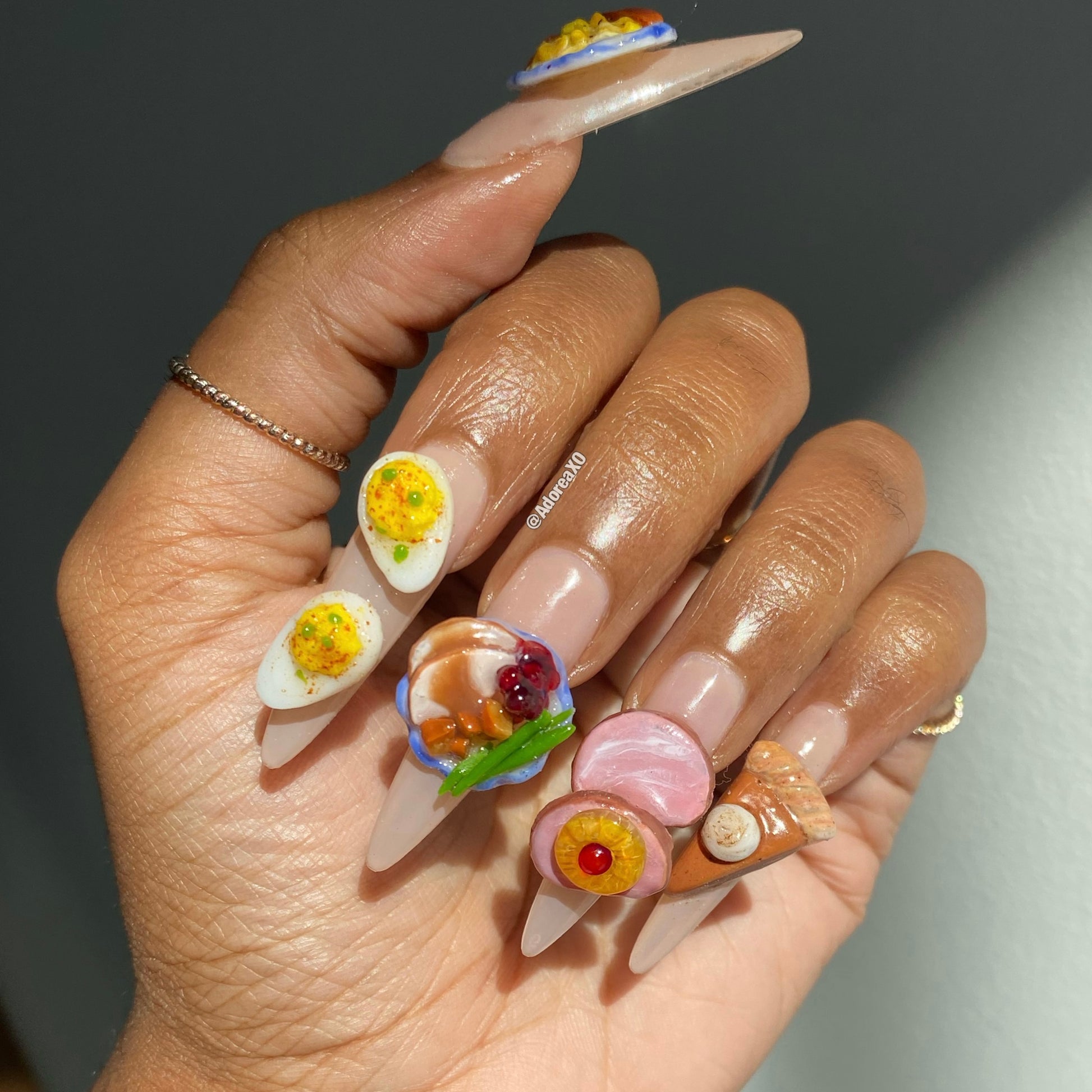 Made to order, handmade soft gel press ons. XL Pointed shape is pictured.