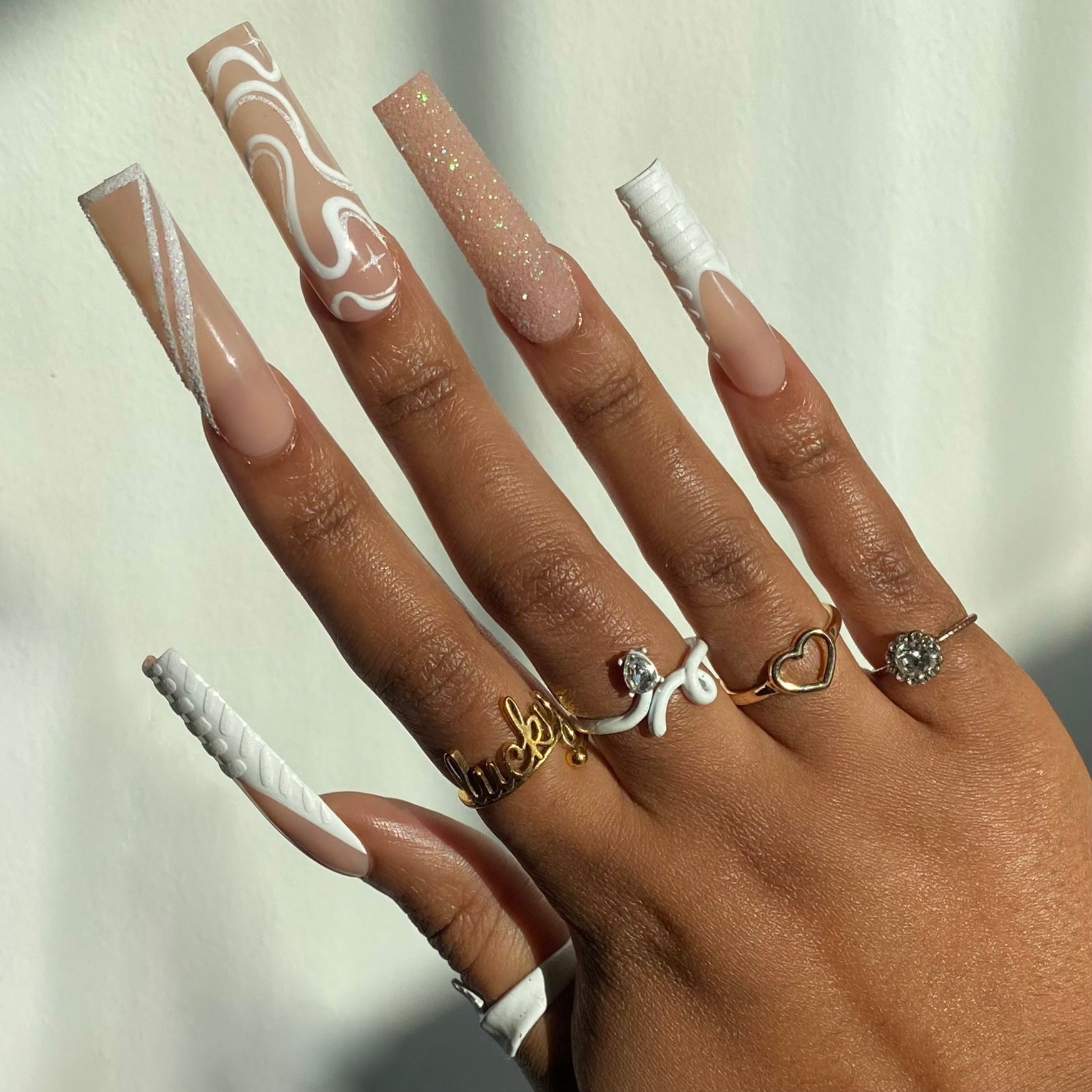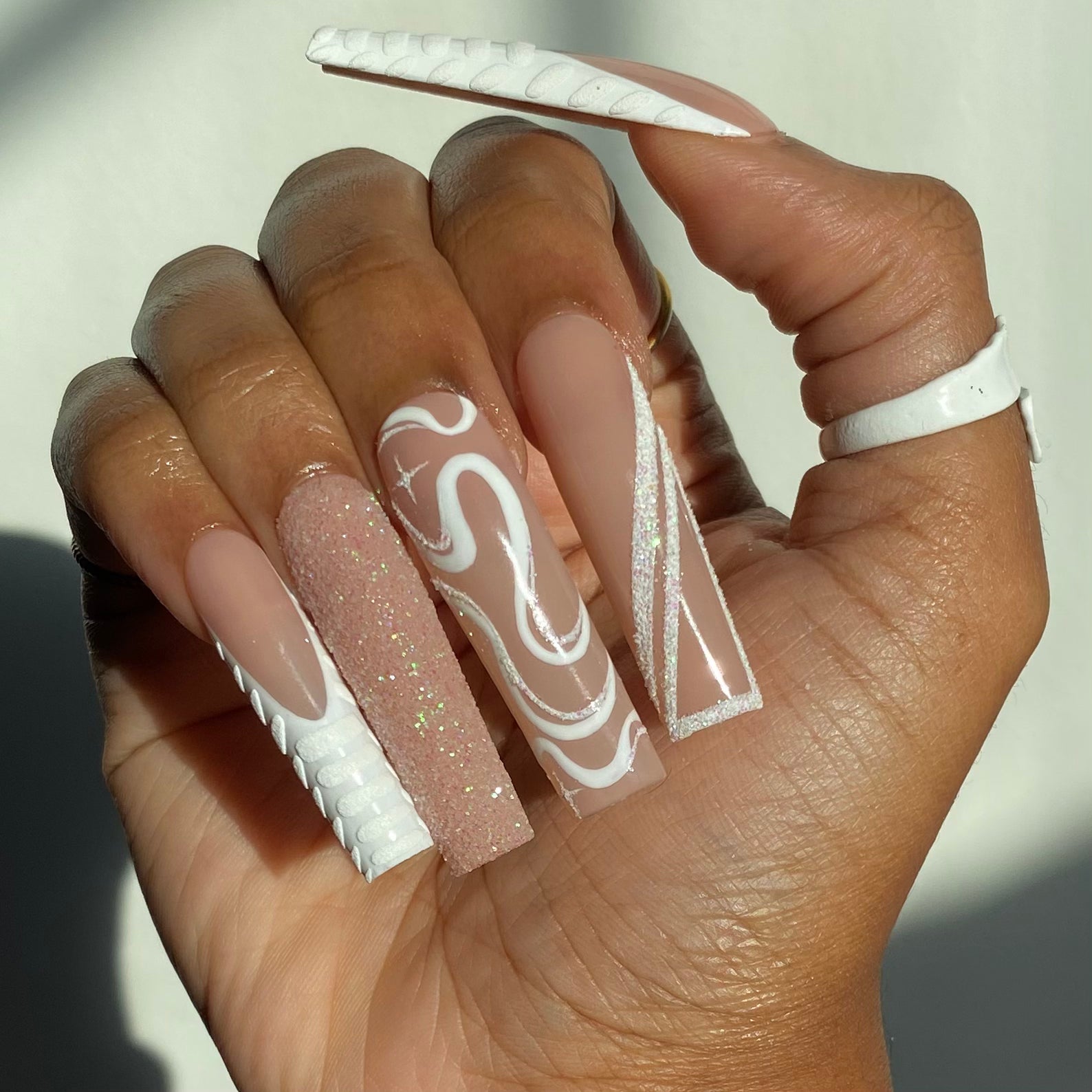 Made to order, handmade soft gel press ons. XL Square shape is pictured.